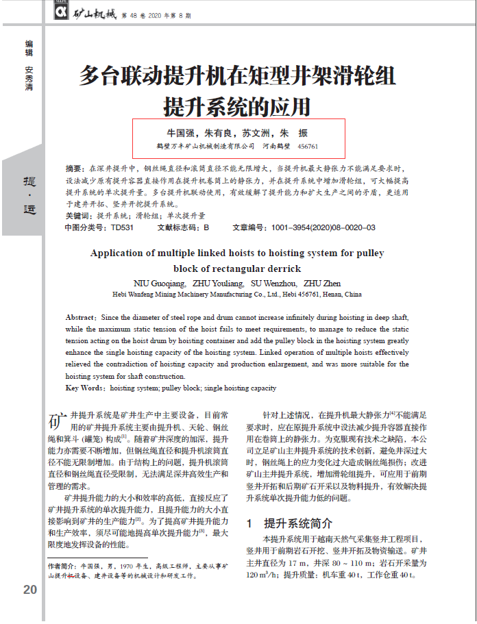 多臺聯(lián)動提升機在矩形井架滑輪組提升系統(tǒng)的應(yīng)用