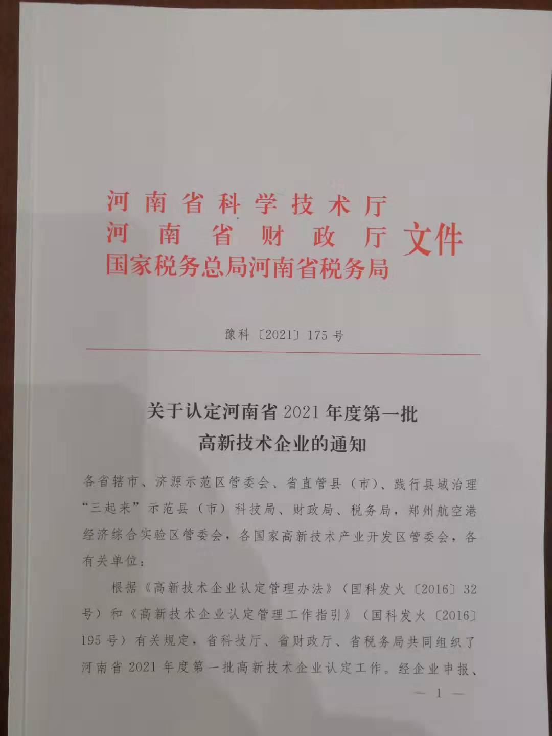 熱烈祝賀鶴壁萬豐公司喜獲高新技術(shù)企業(yè)